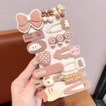 • Bows: Multiple bow clips in shades of brown with white accents, giving a soft, cozy, and elegant look. Some have pearl-like embellishments for added charm.