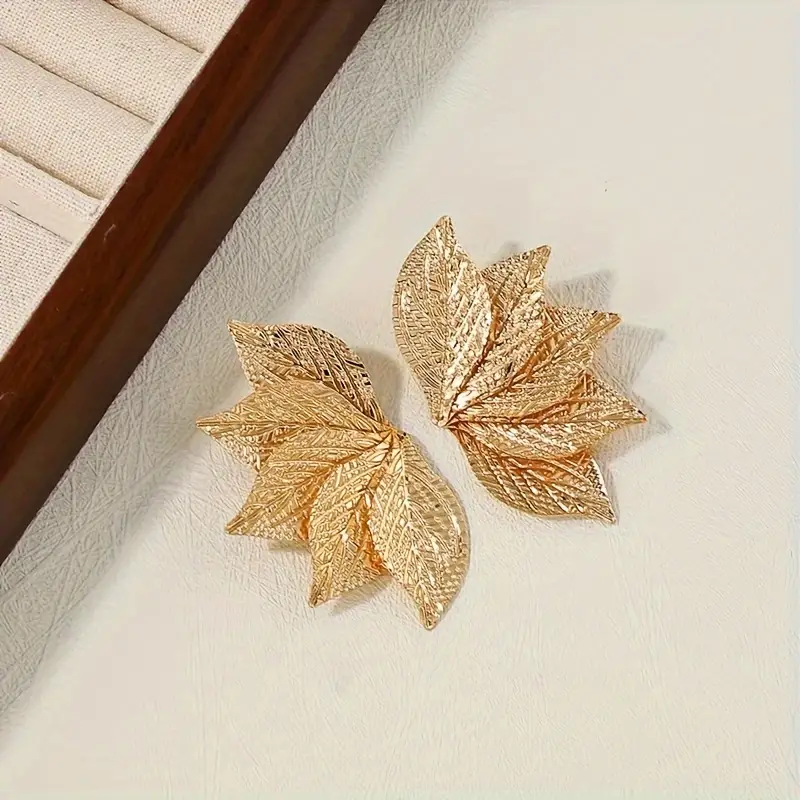 Minimalist Leaf-Shaped Stud Earrings for Women – Elegant Alloy Design with Iron Posts, Perfect for Casual Wear