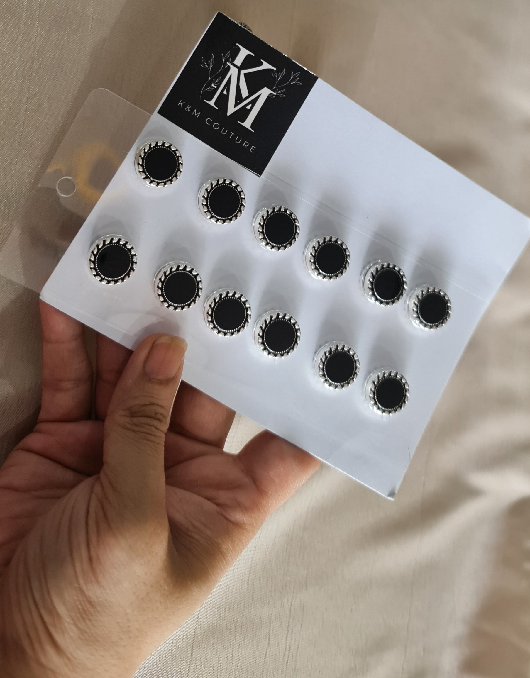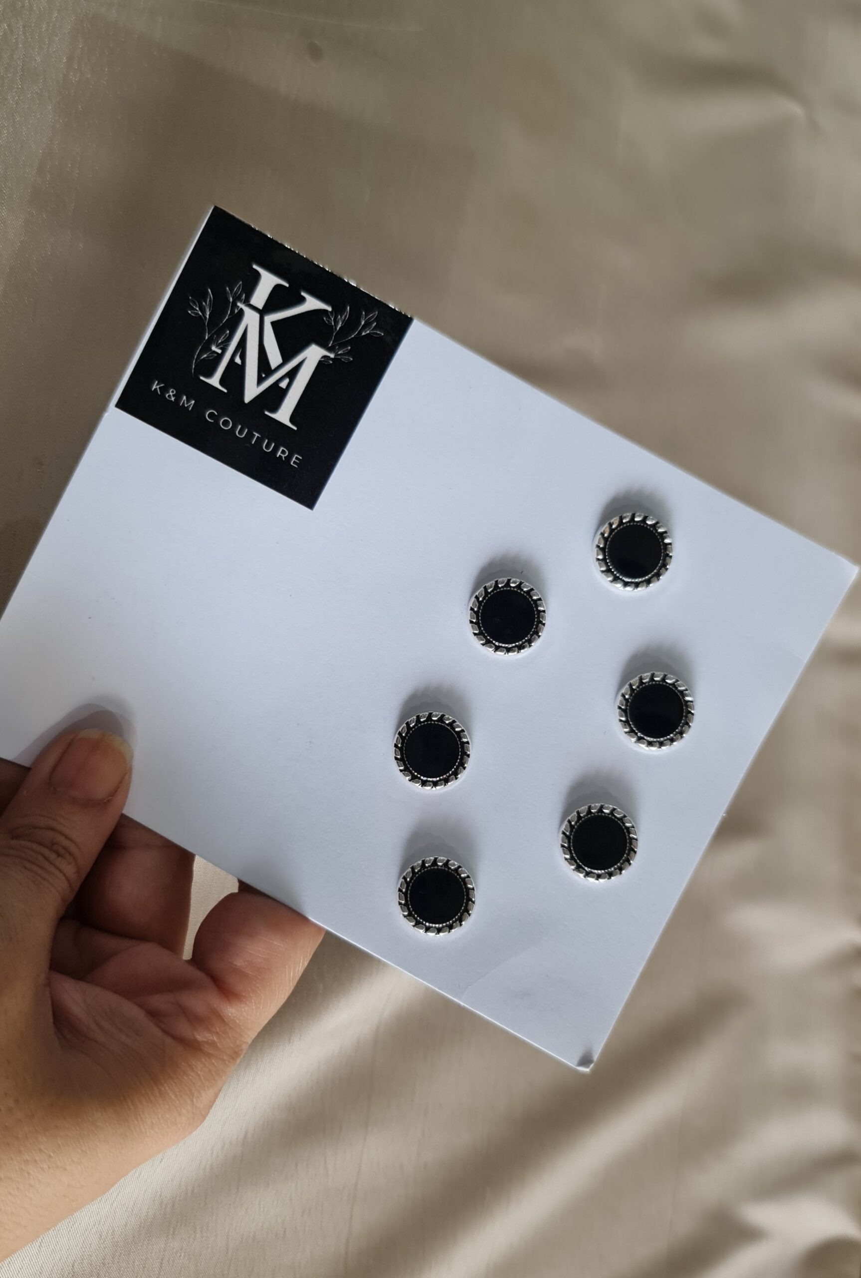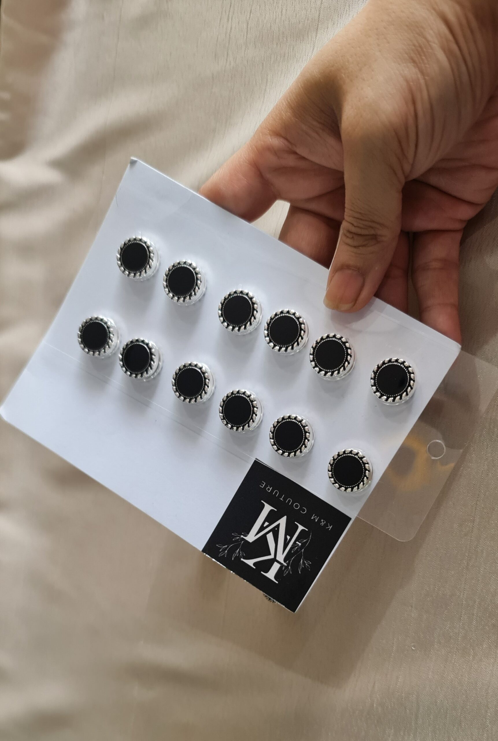 Premium hijab magnets designed to secure your hijab effortlessly without causing fabric damage. Featuring a sleek black stone center encased in an elegant antique silver-toned frame with detailed edging, these magnets combine both functionality and style.