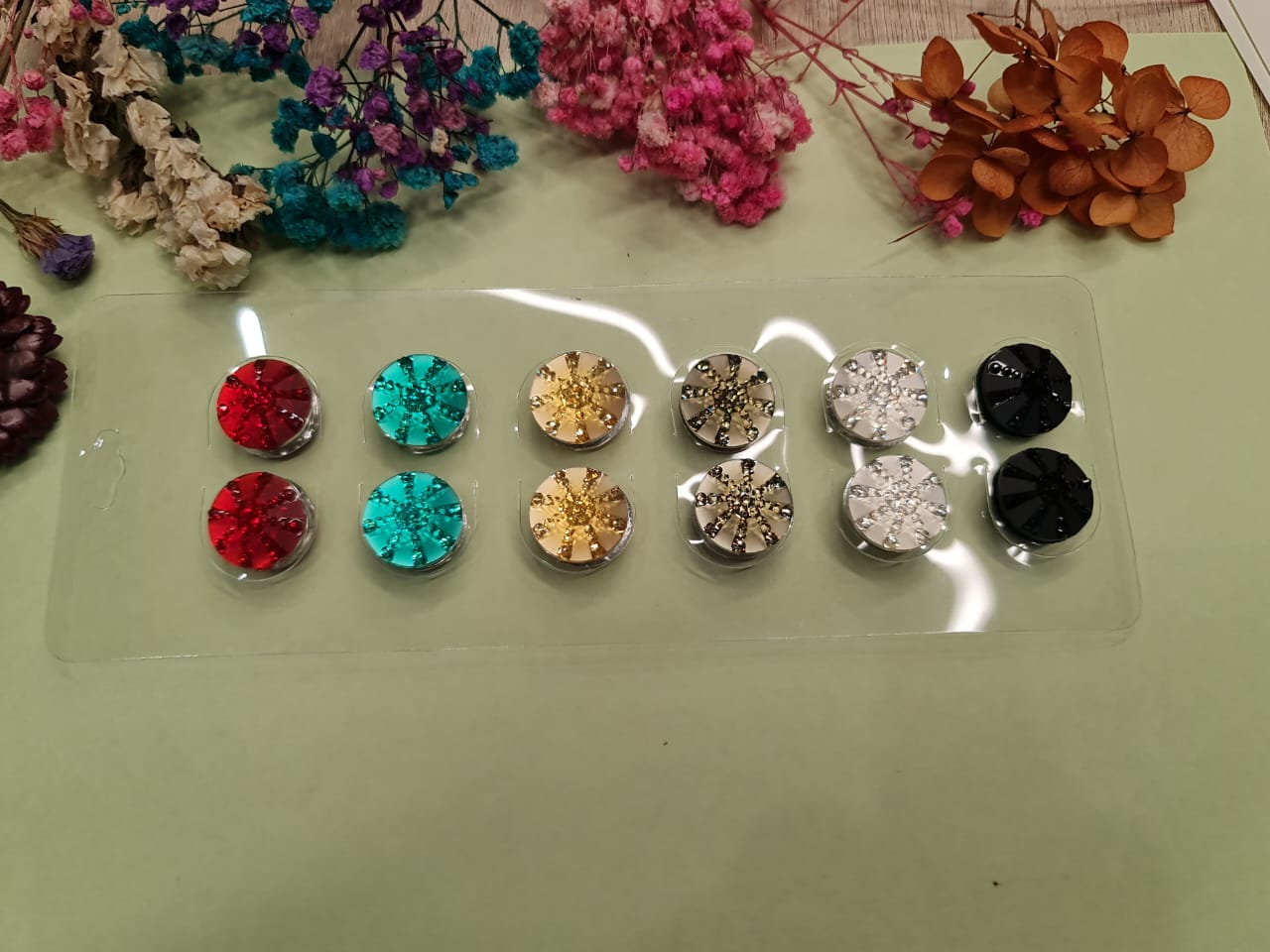 Designed with high-quality crystal embellishments, these magnets provide a firm grip without snagging or damaging your delicate fabrics. Whether for everyday wear or special occasions, they ensure a seamless, stylish look. Available in vibrant colors and dazzling finishes, they complement any outfit, making them a must-have for every hijabi. 💫