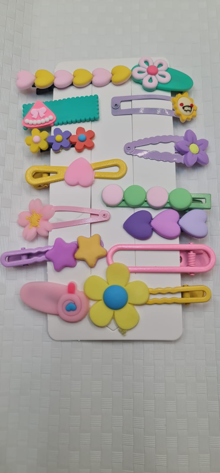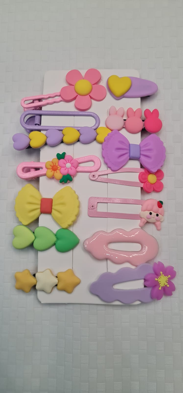 The set includes a variety of stylish clips with beautiful embellishments such as: